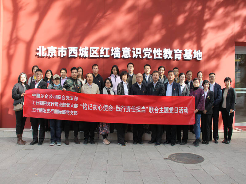 为进一步巩固“不忘初心、牢记使命”主题教育学习成果,构建“资源共享、双向共赢”的企银党建工作新格局,10月27日,乡企公司第一、二、三党支部党员与工行朝阳支行营业室、国际部党支部赴西城区红墙意识党性教育基地进行参观学习,开展“铭记初心使命、践行责任担当”主题党建共建活动。